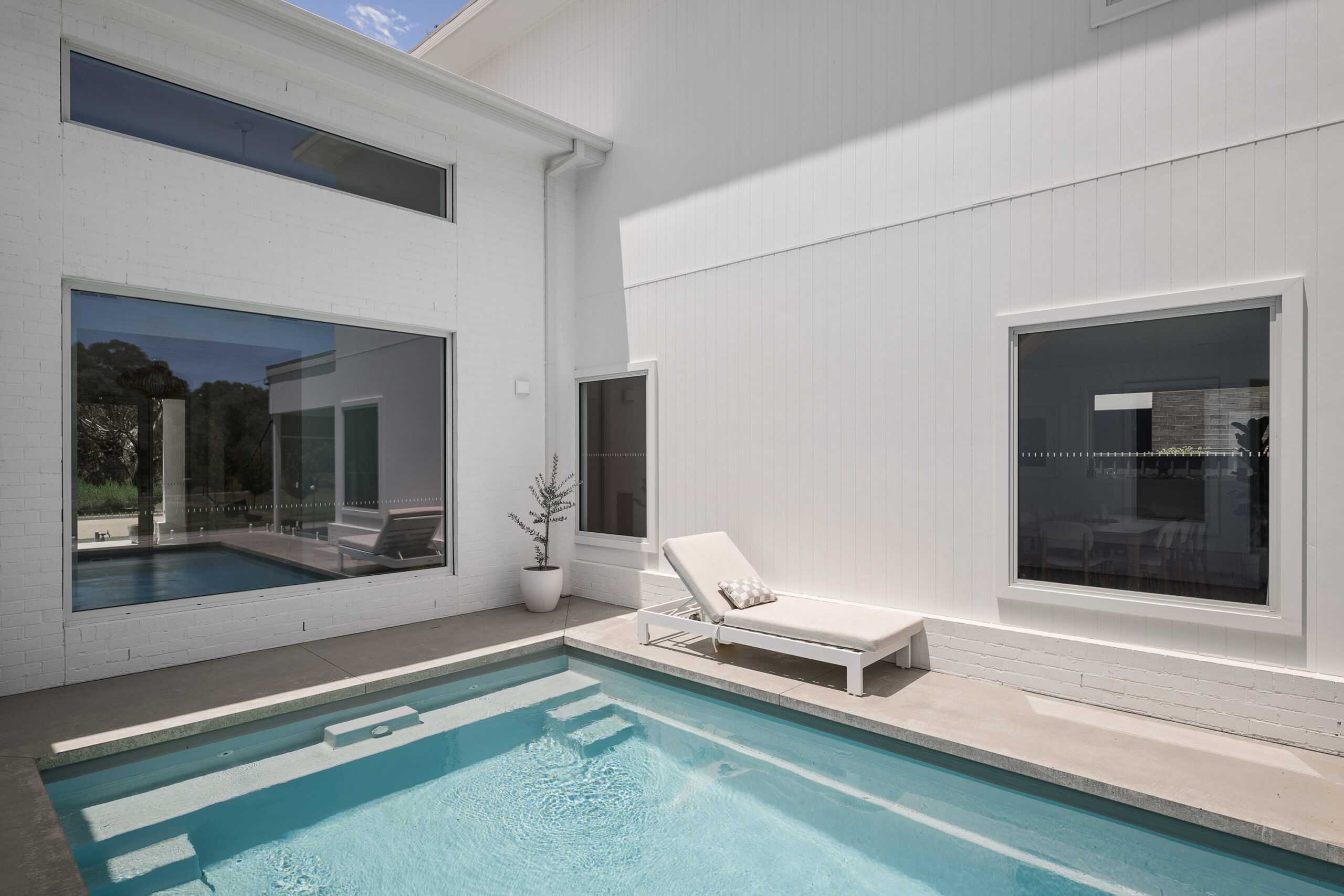 At the heart of the outdoor space, the pool takes centre stage. Framed by river flat views and designed for both relaxation and entertaining, this area has been transformed into a private haven. Ceiling fans ensure comfort through the warmer months, while stylish outdoor blinds provide year-round functionality. Whether hosting friends or enjoying a quiet afternoon, this space delivers the ultimate retreat experience.